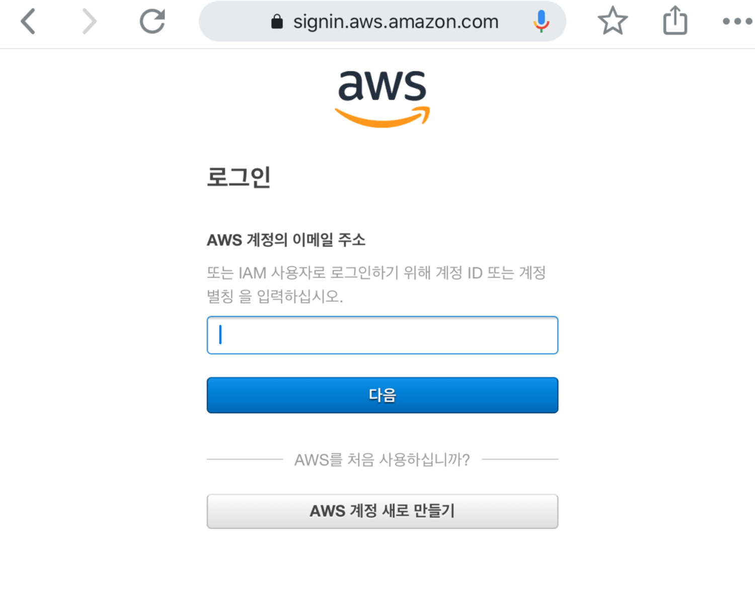 아무튼 결론은 이메일입니다. 이메일은 입력하고 패스워드를 입력하면 아마존 웹 서비스 웹콘솔로 이동합니다.