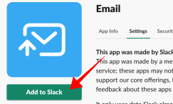 Email 앱 상세 페이지에서 앱 아이콘 아래쪽의 Add to Slack 버튼을 클릭합니다.